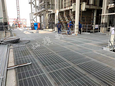 描述: 電廠平臺鋼格板 是用扁鋼按照一定的間距和橫桿進行交叉排列,并...